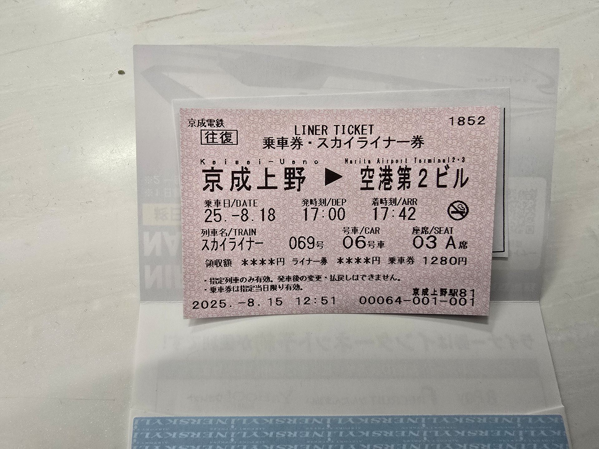 스카이라이너 왕복으로 사서 받은것